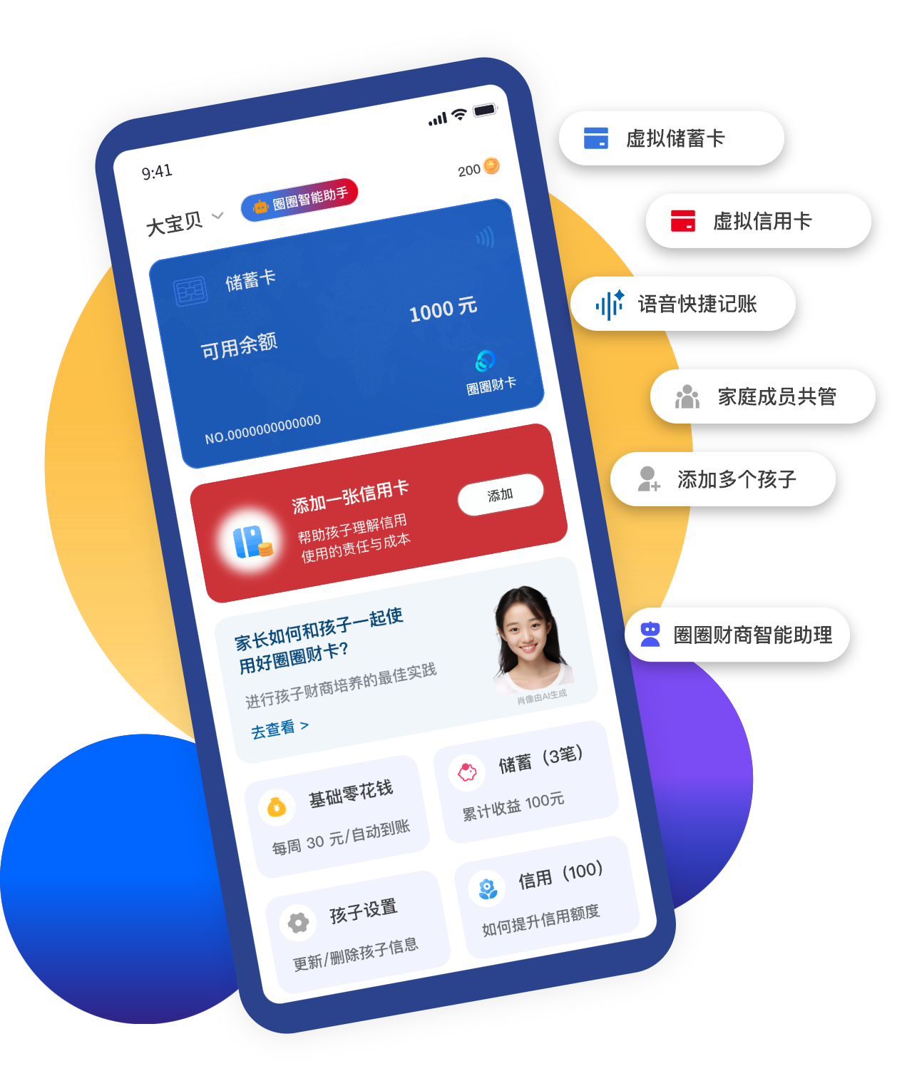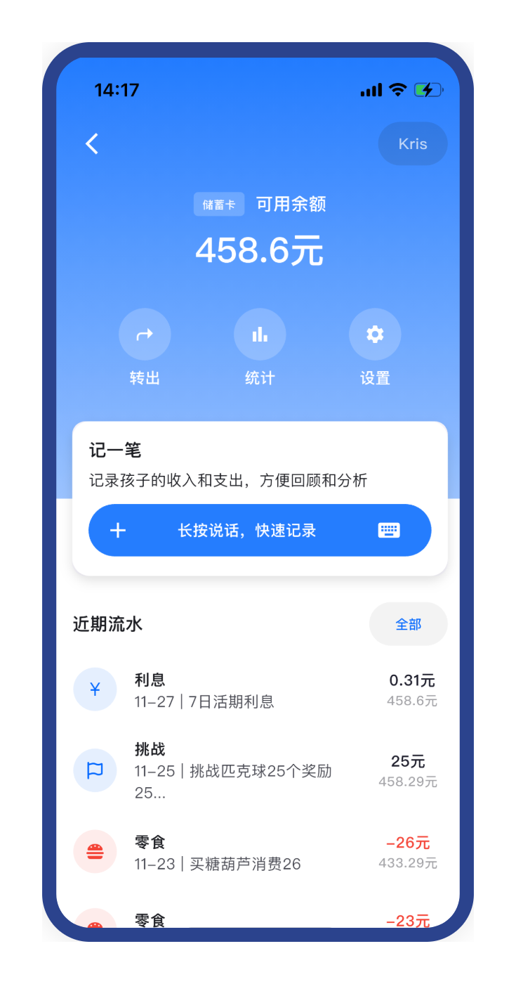 你将成为孩子的虚拟银行,用虚拟银行卡,培养孩子财商!储蓄、信用、任务奖励,全家共管,寓教于乐。
